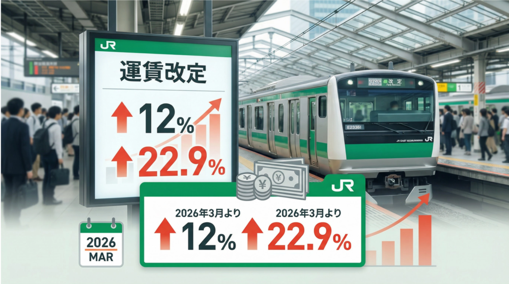 JR東日本の値上げ、何がどう変わる? 2026年3月14日、JR東日本は民営化以来初となる運賃の「本体値上げ」に踏み切ります。消費税率の改定に伴う値上げは過去にもありましたが、今回はそれとは根本的に性質が異なります。私たちの生活にどのような影響があ... -
