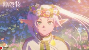 映像の中で特に印象的に描かれるのが、フリーレンが佇む広大な花畑です。『葬送のフリーレン』において、「花」は非常に重要なモチーフとして繰り返し登場します。ヒンメルが好きだった蒼月草、フェルンに贈った鏡蓮華など、花は「誰かのことを想う気持ち」や「記憶の継承」の象徴です。オープニングでフリーレンが身に着けている花冠や、彼女を取り囲む色とりどりの花々は、これまでの旅で彼女が触れてきた人々の想いや、積み重ねてきた記憶そのものを表していると解釈できます。かつては他者に無関心だった彼女が、今や多くの想い(花々)に囲まれている。その穏やかで、どこか遠くを見つめるような表情は、過去を慈しみ、未来へと歩みを進める彼女の内面的な成長を静かに物語っています。