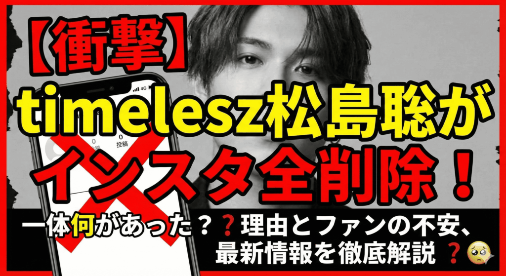 【衝撃】timelesz松島聡がインスタ全削除!一体何があった?理由とファンの不安、最新情報を徹底解説