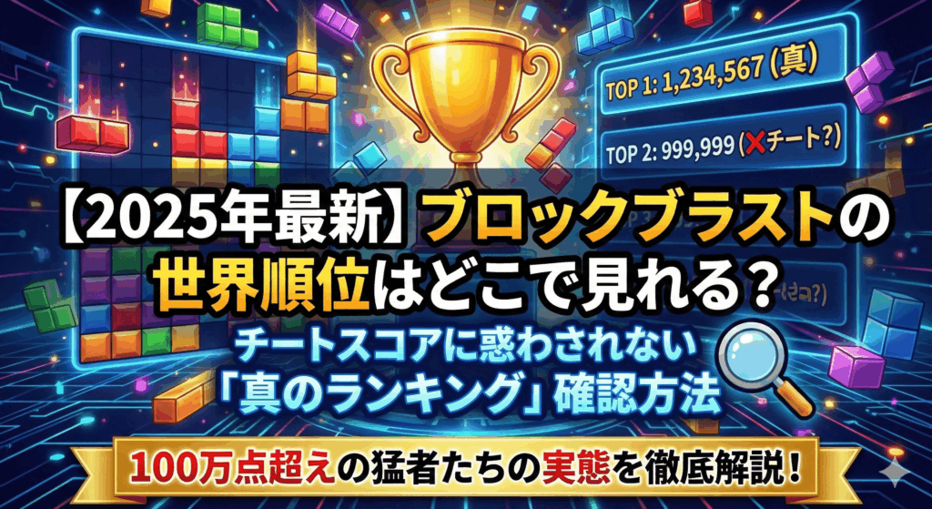 【2026年最新】ブロックブラストの世界順位はどこで見れる?チートスコアに惑わされない「真のランキング」確認方法と100万点超えの猛者たちの実態を徹底解説!