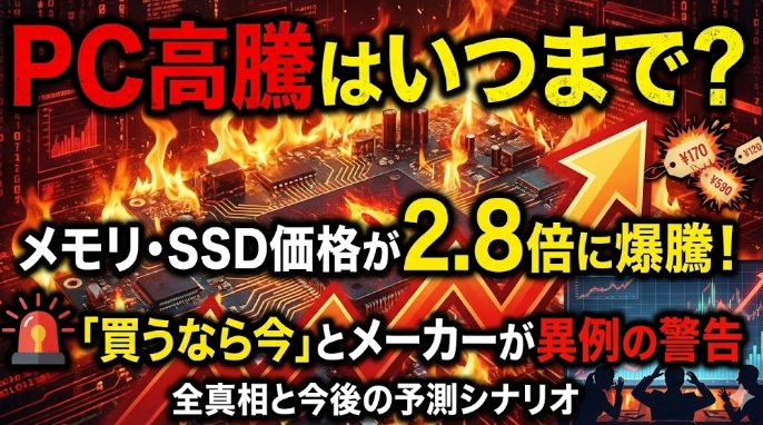 PC高騰はいつまで?メモリ・SSD価格が2.8倍に爆騰!「買うなら今」とメーカーが異例の警告を発する全真相と今後の予測シナリオ