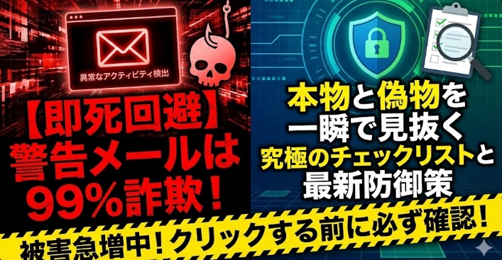 【即死回避】「異常なアクティビティ検出」警告メールは99%詐欺!本物と偽物を一瞬で見抜く究極のチェックリストと最新防御策