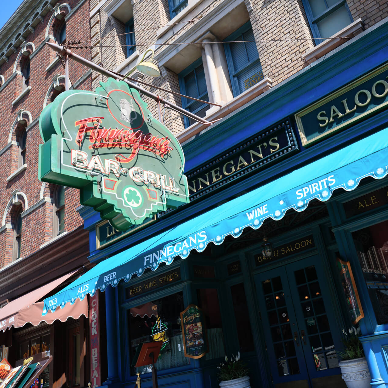 フィネガンズ・バー&グリルは、2001年3月31日のUSJグランドオープンと同時に、ニューヨーク・エリアの一角に誕生しました。そのテーマは、1930年代のニューヨークに実在したかのような、古き良きアイリッシュパブ。重厚な木目調のインテリア、ステンドグラスの照明、そして壁一面に飾られたアイルランドの伝統的な装飾品が、パークの喧騒を忘れさせる落ち着いた空間を演出していました。
