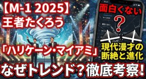 この記事は、この現象を深く理解したいと考える方のために、M-1グランプリ2025で巻き起こった論争の深層に迫ります。特に、王者の勝因となった「ハリケーンでマイアミにお留守番」ネタの核心的な面白さ、そして最新のSNSで懸念されている「笑いの消費」の構造まで、あらゆる側面から情報を網羅的に提供し、この大会が示した漫才の未来を考察します。