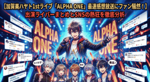 加賀美ハヤト1stライブ「ALPHA ONE」は、単なる音楽ライブの枠を超え、彼がこれまで積み上げてきた絆やリスペクトが形になる場所です。事前番組で佐伯イッテツさんが熱を高め、本編で加賀美さんが「最強」を証明し、事後番組で甲斐田晴さんたちがその感動を分かち合う。この一連の流れこそが、今回のイベントの醍醐味と言えるでしょう。