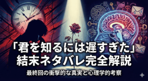 多くの視聴者が固唾を飲んで見守った「君を知るには遅すぎた」の最終回。すれ違い続けた二人の恋の行方は、一体どのような結末を迎えたのでしょうか。ここでは、原作小説の壮絶な結末との比較も交えながら、ドラマ版の感動的なラストシーンを詳細に解説します。