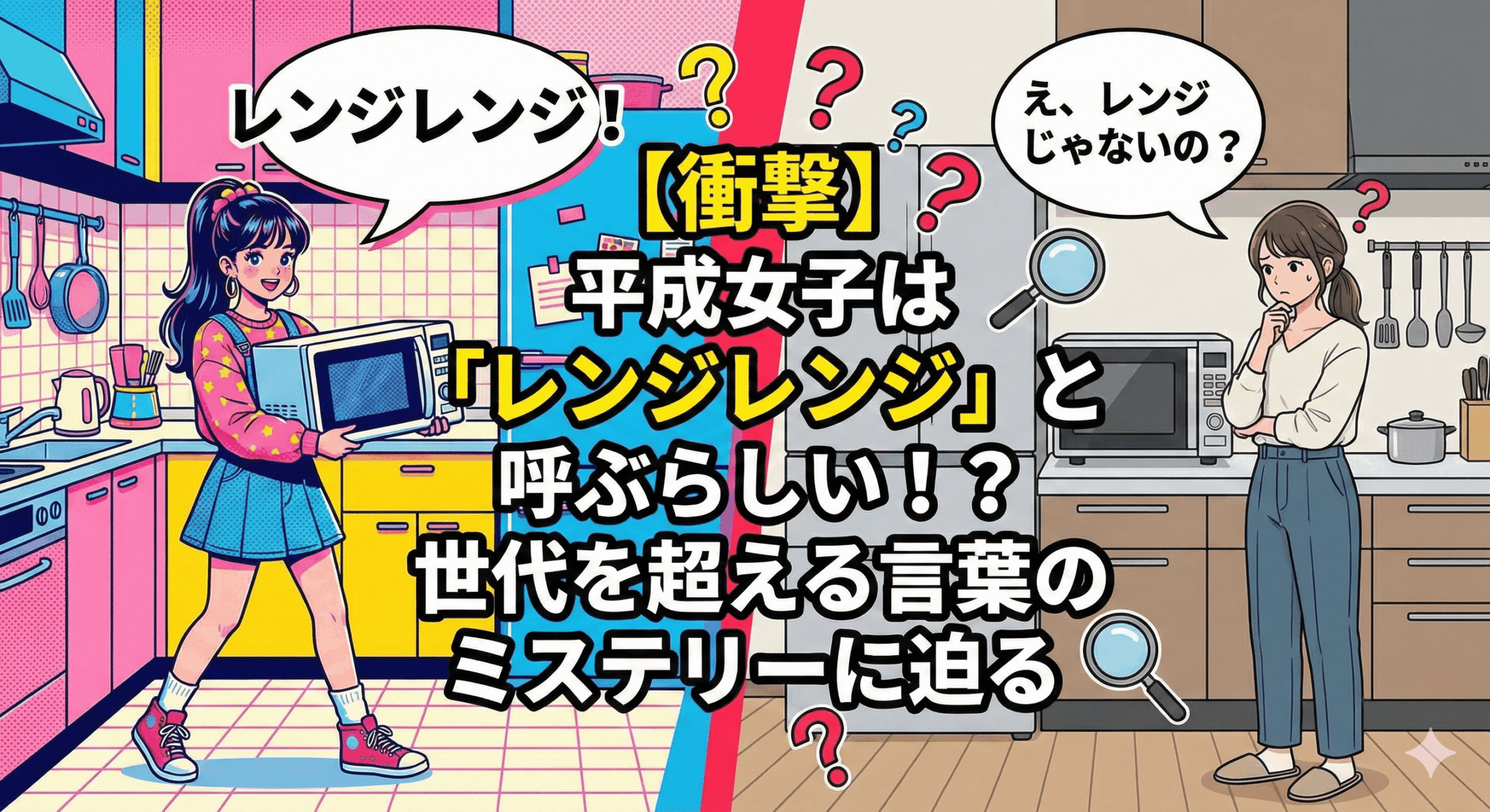 この記事では、そんな「レンジレンジ」の謎を徹底的に解明します。なぜ「電子レンジ」が「レンジレンジ」に進化したのか、その背景にある平成女児カルチャーやSNSの影響力を、実際のユーザーの声を元に、考察していきます。さらに、「レンジレンジ」だけじゃない、思わず「え、そうなの!?」と膝を打つような、世代によって呼び方が違う言葉たちを、その面白い由来やエピソードと共にたっぷりとご紹介。言葉の背景にある時代背景や文化的背景を読み解くことで、世代間のコミュニケーションがより豊かになるはず。この記事を読み終える頃には、あなたもきっと誰かに話したくてたまらなくなるでしょう。言葉のタイムスリップ旅行へ、いざ出発です!