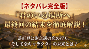 そして、物語のラストシーン。許紅豆と謝之遥は、満点の星が輝く夜空の下、二人きりで静かな時間を過ごします。これまでの道のりを振り返り、亡き親友や大切な人々へ想いを馳せる紅豆。そんな彼女を、謝之遥はただ優しく見守ります。「時が止まればいいのに…」紅豆のその言葉は、これ以上ない幸福感に包まれた彼女の心境を、何よりも雄弁に物語っていました。二人がキスを交わすシーンはなく、ただ寄り添い、同じ星空を見上げる。この静かで美しいラストは、「君のいる場所へ」という作品が描いてきた、穏やかで、しかし何よりも深い愛の形を象徴する、完璧なハッピーエンドと言えるでしょう。