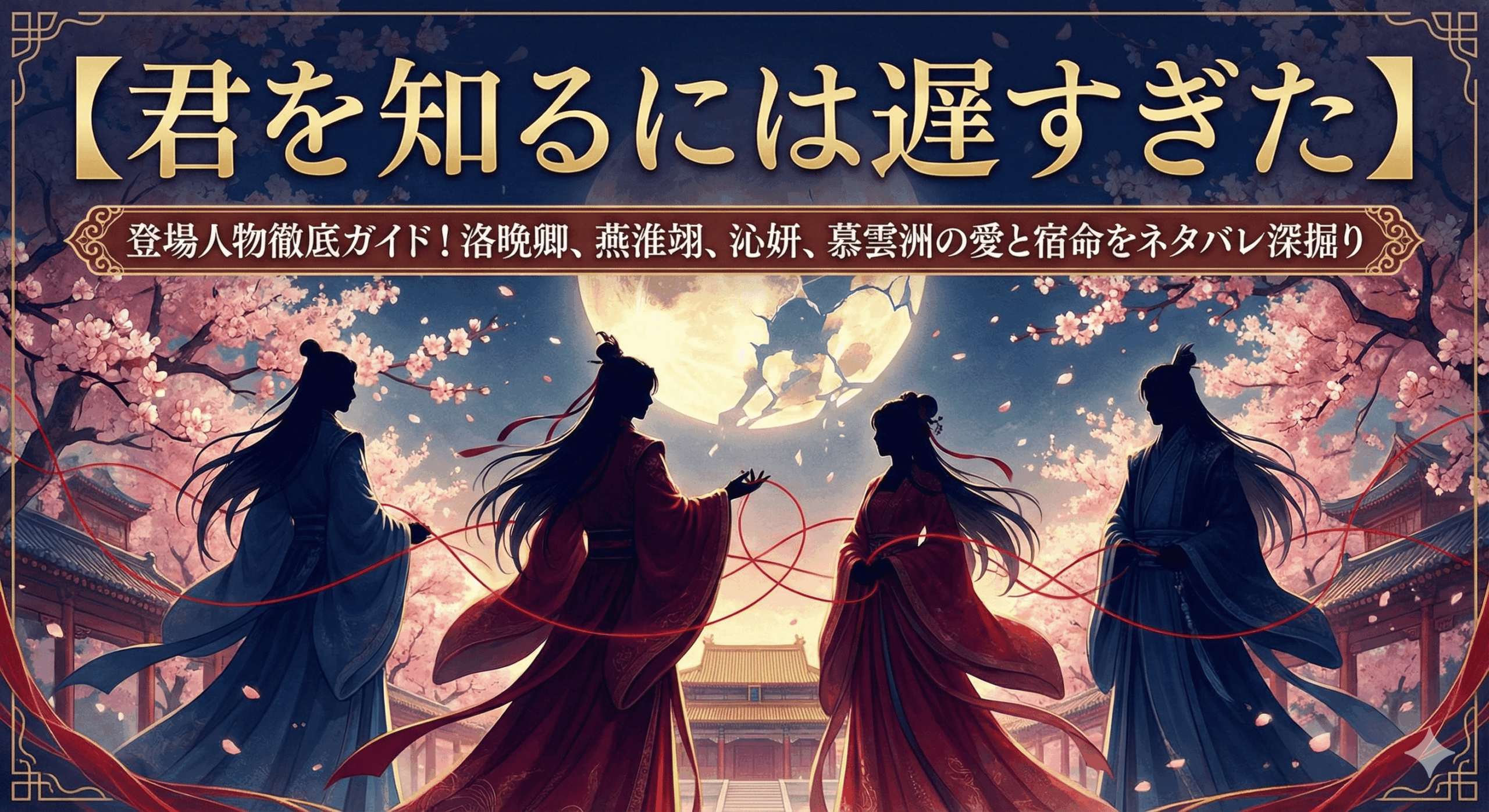 この記事では、前回の結末解説からさらに深く、物語の核心を担う四人の重要人物—洛晚卿(らくばんけい)、燕淮翊(えんわいよく)、沁姸(しんけん)、そして慕雲洲(ぼうんしゅう)—に焦点を当て、彼らの人物像、心理、そして運命の軌跡を、ネタバレ全開で徹底的に解剖していきます。溢れる無数の考察、そしてキャラクターたちの心の叫びを拾い集め、一人ひとりの内面に深く潜っていくことで、この物語がなぜこれほどまでに私たちの感情を揺さぶり、深い感動を与えるのか、その本質に迫ります。この記事を読み終える頃には、あなたはもう一度、彼らの物語を最初から見届けたくなるに違いありません。