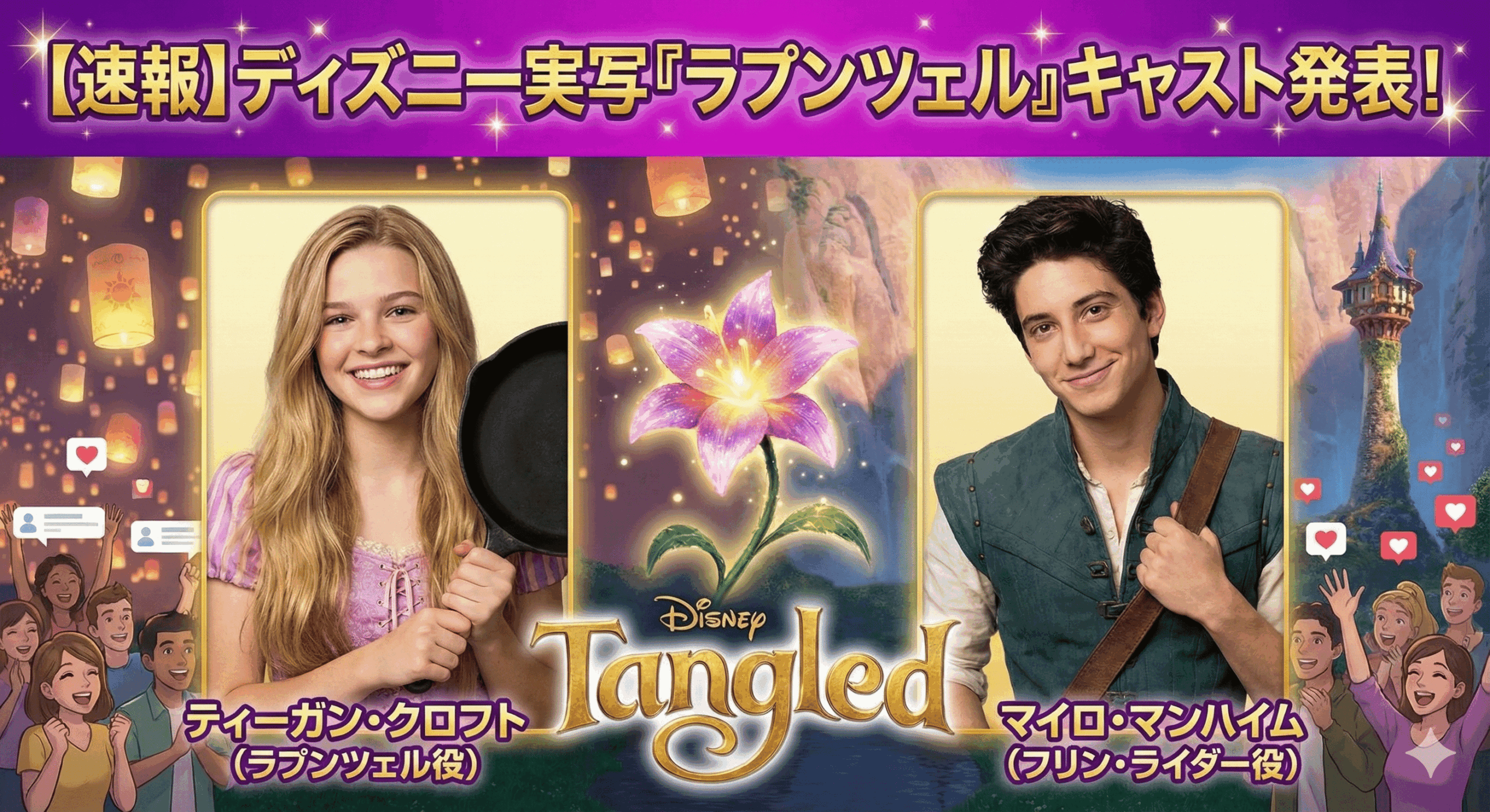 世界中のディズニーファンが固唾をのんで見守っていた実写版『塔の上のラプンツェル』のキャスティング。現地時間2026年1月7日、ついにそのベールが剥がされました。ディズニーは公式SNSアカウントを通じて、物語の核となる二人の主人公、ラプンツェルとフリン・ライダーの配役を正式に発表。その瞬間、SNSは歓喜の声で埋め尽くされることとなります。