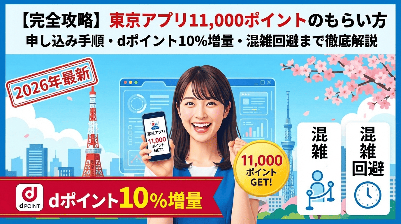 2026年2月2日13時、ついに東京アプリ生活応援事業がスタートしました。 15歳以上の東京都民なら誰でも11,000円相当のポイントがもらえるこの大型事業。しかし開始直後から「繋がらない」「エラーが出る」といった声がSNSで相次いでいます。この記事では、公式情報をベースに、申し込み手順・混雑回避テクニック・お得な交換先・トラブル対処法まで、この1本で完全に理解できる決定版ガイドをお届けします。