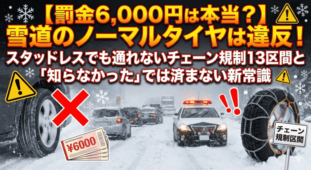 【罰金6,000円は本当?】雪道のノーマルタイヤは違反!スタッドレスでも通れないチェーン規制13区間と「知らなかった」では済まない新常識