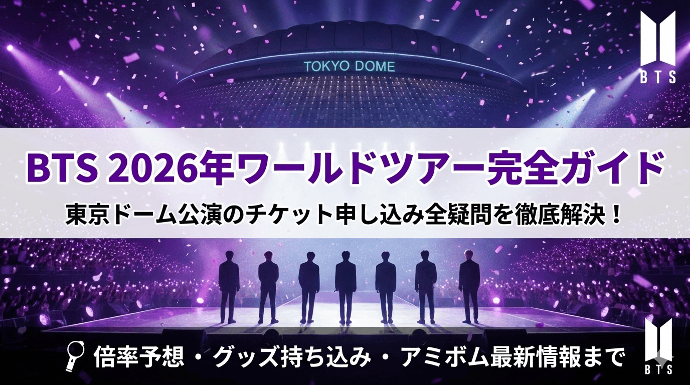2026年、世界中のARMYが待ち望んだBTS(防弾少年団)の完全体でのワールドツアーが、ついに現実のものとなります。メンバー全員が兵役の義務を終え、再び7人でステージに立つ姿は、まさに歴史的な瞬間となるでしょう。特に、約7年ぶりとなる日本公演は、東京ドームでの2日間ということもあり、すでにファンの間では大きな期待と興奮が渦巻いています。この記念すべき公演のチケットを巡る戦いは、過去最高レベルの激戦となることが予想されます。