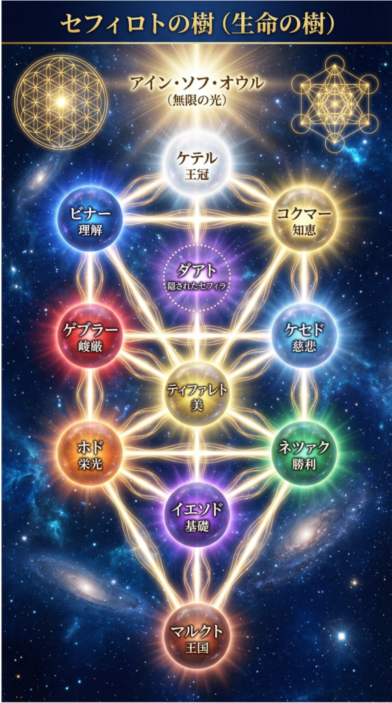 カバラとは、中世ヨーロッパで発展したユダヤ教の神秘主義思想です。その目的は、世界の創造や神の本質、そして人間と神との関係性を体系的に解き明かすことにあります。非常に複雑で難解な思想体系ですが、その中核をなすのが「セフィロトの樹(生命の樹)」という概念です。