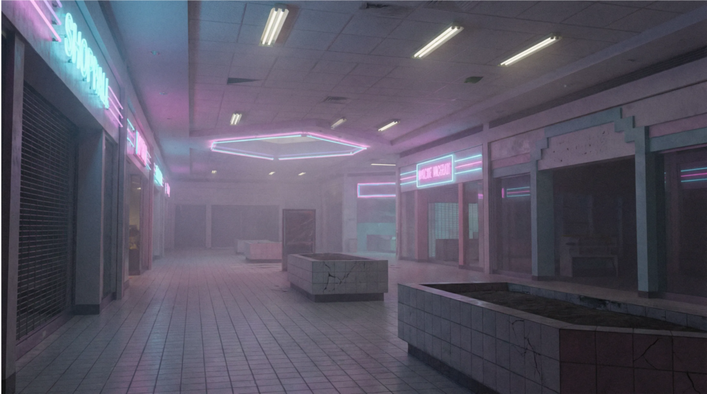その世界観は、ただ美しいだけでなく、どこか非現実的で、ノスタルジックでありながらも、同時に説明のつかない不安感や不気味さを伴うのが特徴です。光と影のコントラストが強く、誰もいない子供の遊び場、がらんとしたショッピングモール、奇妙なオブジェクトが置かれた部屋など、現実と非現実の境界線が曖昧になったようなイメージがよく見られます。