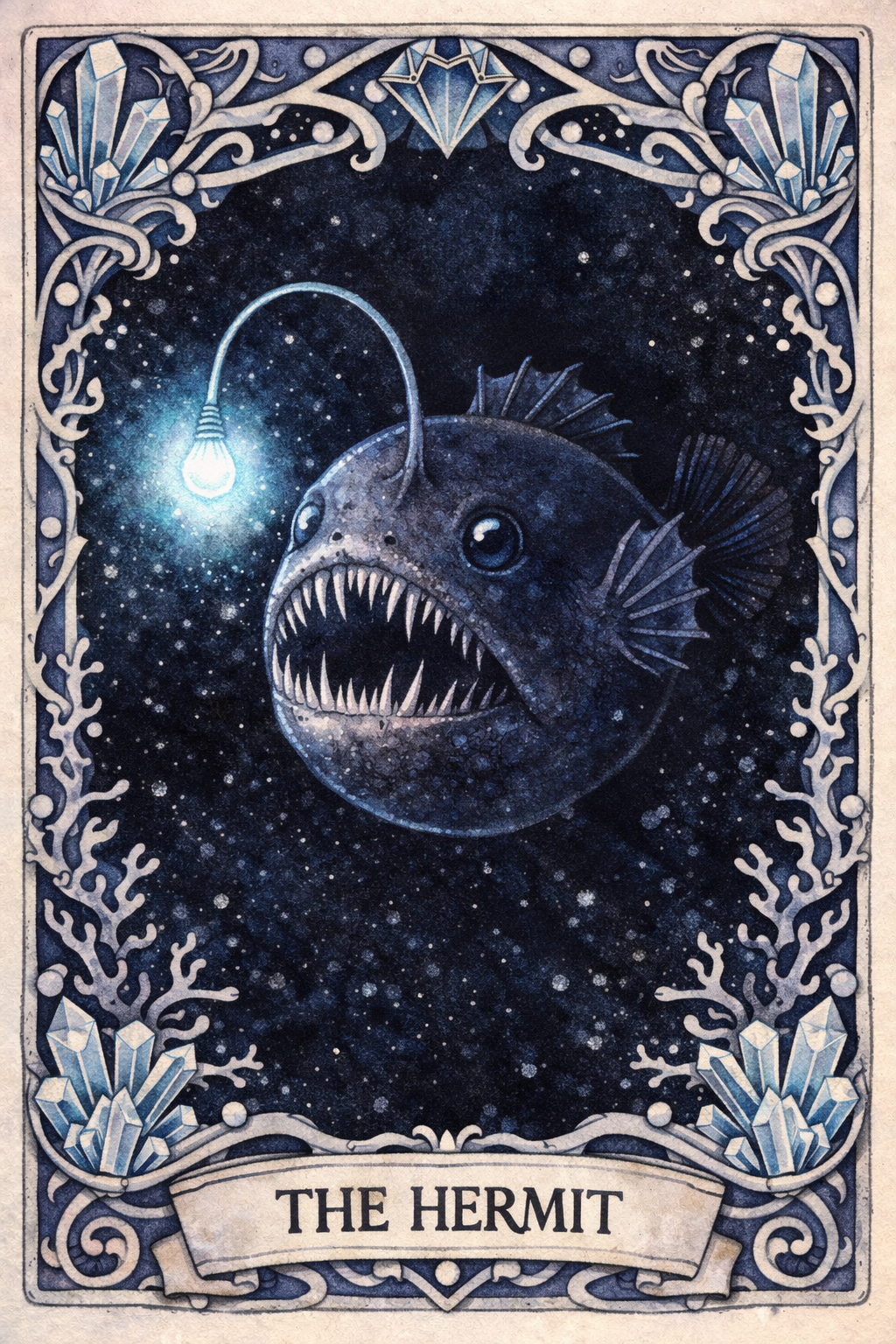 ユングの16タイプ理論の中で、最も戦略的で、最も独立した思考力を持つ存在。澪タイプ診断では、あなたの守護獣は「深海の灯し手」。光の届かない暗闇の深海で、自ら光を灯して獲物を狩るチョウチンアンコウが、あなたの魂の姿です。