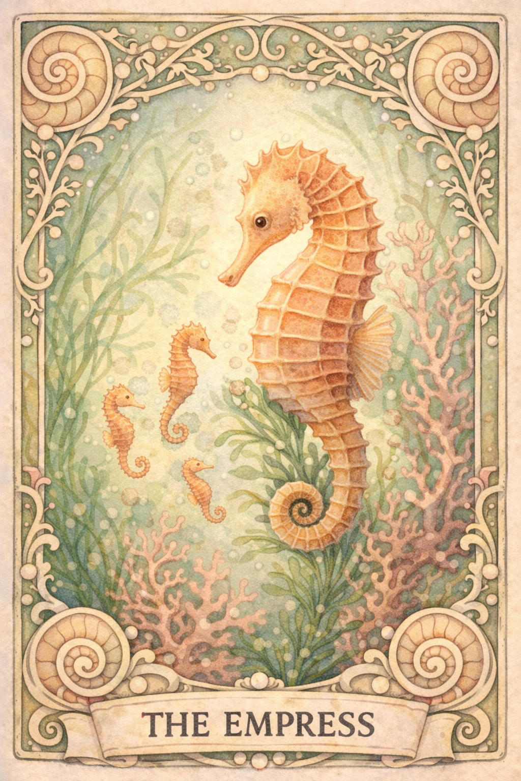 澪タイプ診断では、あなたの守護獣は「揺籃の守り手」。小さな体に甲冑のような骨板をまとい、オスが自らの体で命を育てる唯一の魚──タツノオトシゴが、あなたの魂の姿です。
