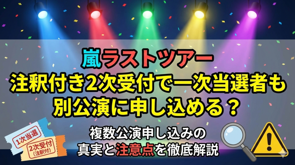 嵐ラストツアー注釈付き2次受付で一次当選者も別公演に申し込める?複数公演申し込みの真実と注意点を徹底解説