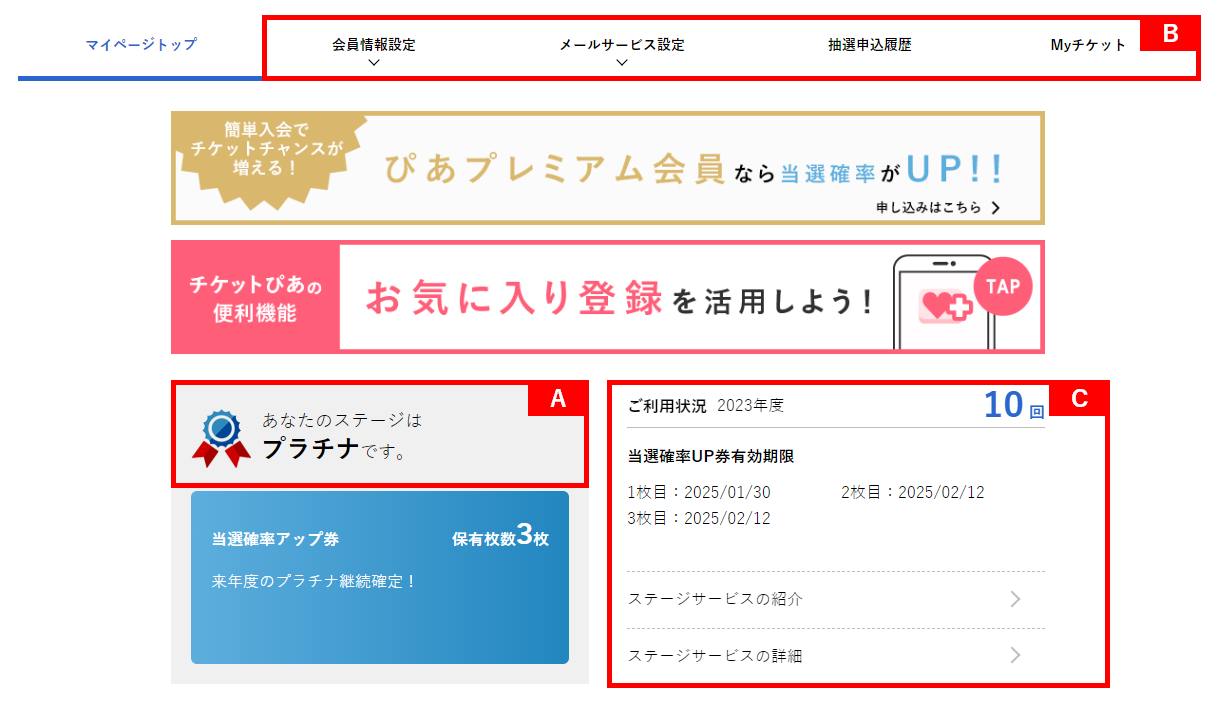 - ページ上部のヘッダーにある 「Myチケット」 をクリック